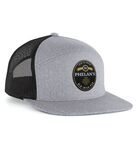 * Polyester/rayon * Trucker Mesh * Mélange fabric front panel * Breathable * Full-profile, arch crown * Shape-able flat bill * Self-material undervisor * Pro-stitched finish * Snapback adjustable
