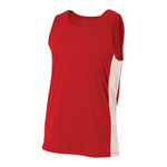 The Pacer Singlet is made from our 100% polyester moisture wicking fabric, with mesh inserts on the side to keep air moving and athletes cool.