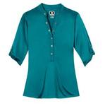 With its 3/4 sleeves and unique sleeve tabs, you'll have a crush on this innovative OGIO henley. 4.9-ounce, 100% poly interlock with stay-cool wicking technology OGIO heat transfer label for tag free comfort 6-snap pique placket with OGIO debossed ring snaps Pique sleeve tabs with OGIO debossed ring snaps Ladies Sizes: XS-4XL
